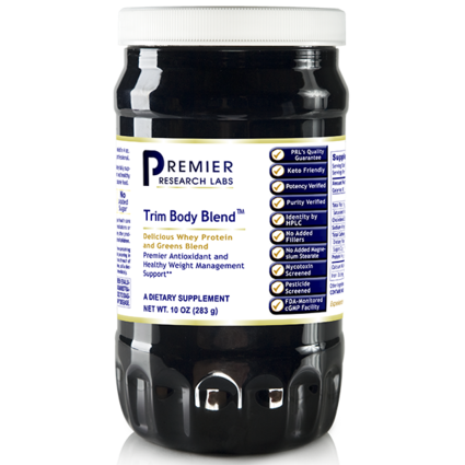 Welcome to Trim Body Blend, a flagship product from Premier Research Labs. This formula delivers a new genre of Performance Protein Drinks that offers a full spectrum of world-class botanical ingredients including alkalinizing greens – all combined together with premier quality whey protein into one delicious, creamy blend. This formula is designed to deliver healthy weight maintenance and antioxidant support.