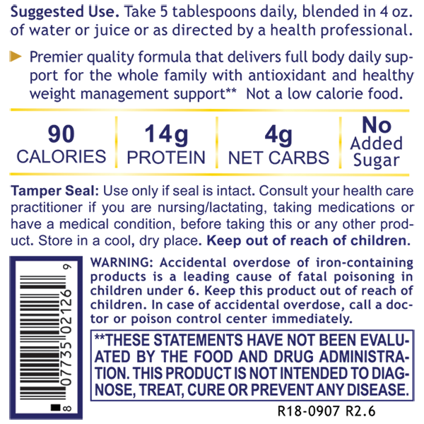Finally, a great vegetarian protein drink for the whole family that contains 100% ultra-quality nutrients with NO compromises! PRL’s Quality Guarantee ensures that the ingredients in Trim Body Blend meet FDA requirements for identity, purity, strength, composition. They have been meticulously tested for contaminates such as pesticides, non-organic materials, heavy metals (including arsenic, mercury, cadmium and lead), undesirable residual solvents in extracts and pathogenic microbiology. This product has not been solvent extracted or heat damaged.